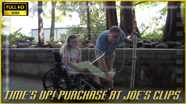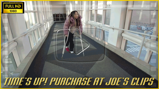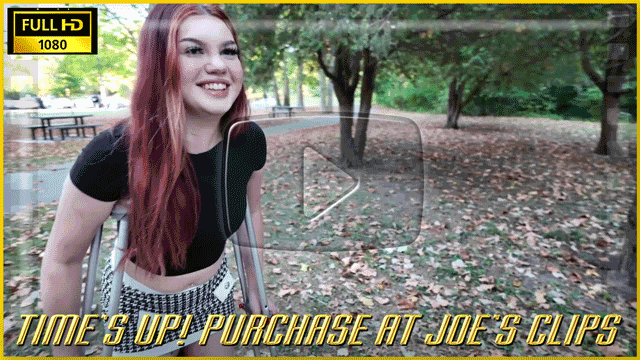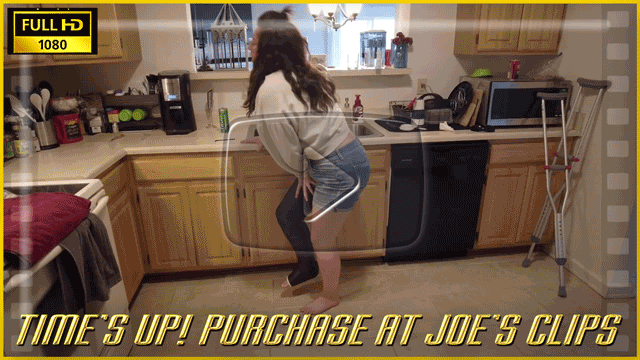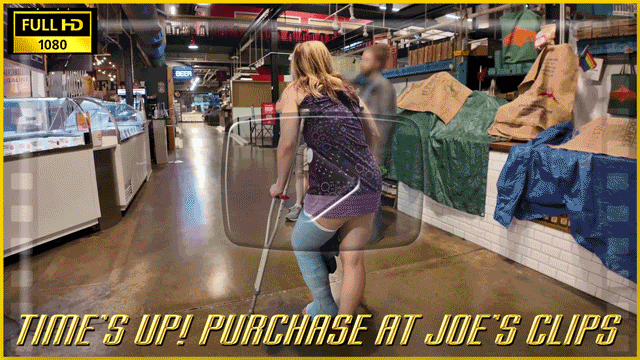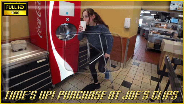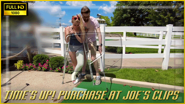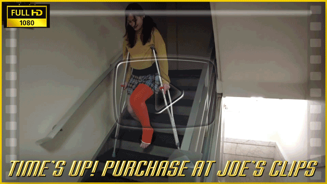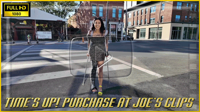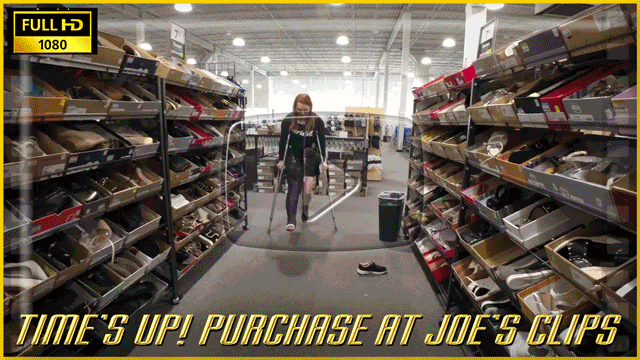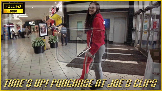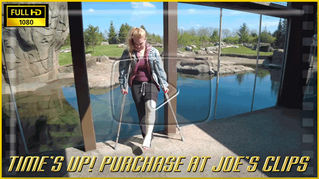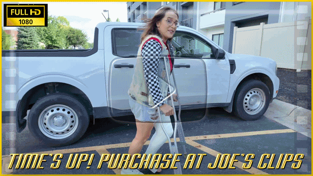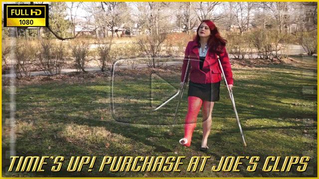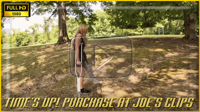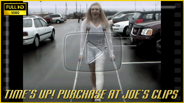Holly was recently hit by a car and luckily her only injury was a broken leg. Her lawyer has advised her to document her everyday life for her upcoming lawsuit. She's hoping to get as much money as possible. She's enlisted her friend to film for her. What you see here is all the "unedited" footage including stuff that she would not want to be seen (not realizing she's being filmed), like her staging hardships and discomfort. The clip starts off with her telling her friend/cameraman how they're going to "get that money" and what she needs to show on camera. Next, it's off to the department store where she explains exactly what kind of footage she's wanting to get there. First she wants to show her struggles with crutching and then her humiliation from driving a scooter. For a while, she pushes a shopping cart, hopping behind it on her good foot, talking about how this cast has ruined her summer plans. Before long she switches back to crutches but she has trouble crutching and pushing a shopping cart so she gets a scooter. She stages some scenes where she has trouble getting up and hopping to get things. The cameraman seems to have his own motivations as he gets some closeups of her wiggling toes propped up and she notices, commenting that it's weird. After the store, she tries to stage a scene to make it look like it's hard for her to pump gas. Then, at the park, she's a little disappointed that you didn't get her fall at the department store on film so she tries to recreate it.