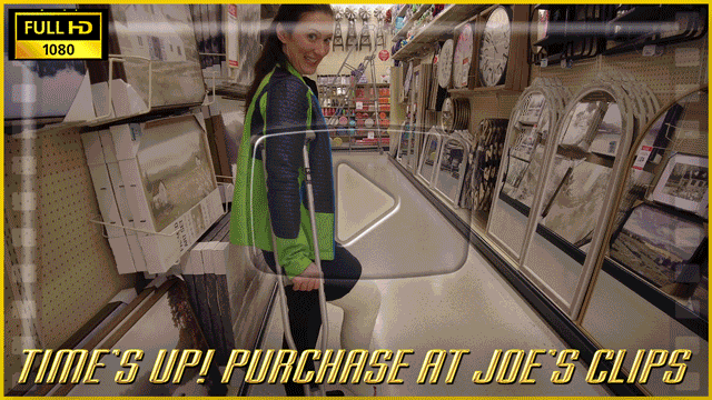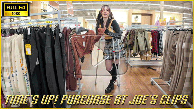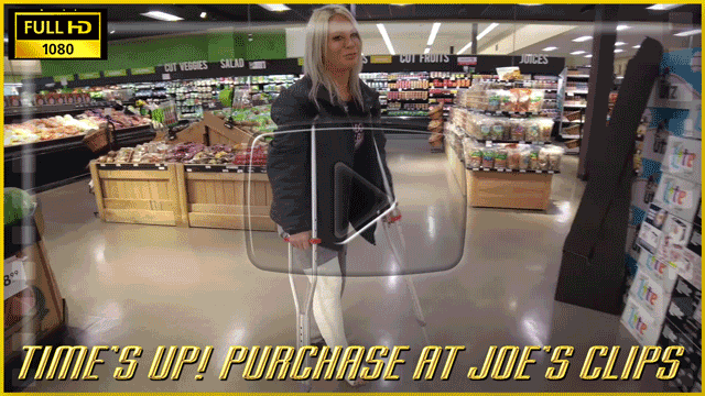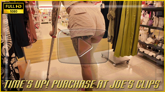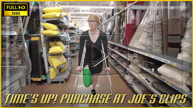 In this clip, almost as long as the huge previous clip, Amanda's at the department store in a scooter, but it's not because she's lazy. Amanda is constantly stopping to hop around and look at clothes and try out furniture. As she drives her scooter, ramming her way through obstacles, she stops and hops up on one leg to look at items in the grocery section. This clip is almost one continuous take, except for a few small edits. After we're done shopping, Amanda stands on one leg as she checks out. Afterwards, we stop at the park so I can get some more crutching footage. She's a machine on the crutches as you can see.