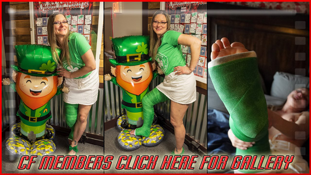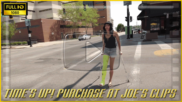Izzabella is definitely not getting pinched in her green LLC this St. Patrick's Day. I wanted to try a public shoot with her so we did a green 90° LLC and went out to a couple of stores. I'm glad I had her miked because she is a quiet talker. She was mostly quiet in stores as she crutched around, but got a little more talkative once we sat down for some coffee. She wears a sock briefly at the coffee shop and then takes it off so the camera can see her wiggling toes. She ad-libs throughout the shoot as if her cast is medical, just guessing what she should say. If you like crutching, log in for this mostly crutching clip!