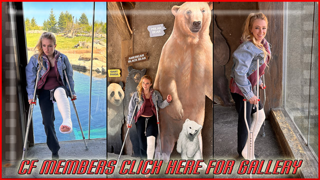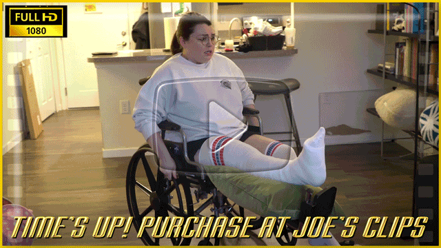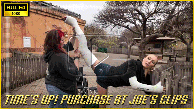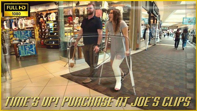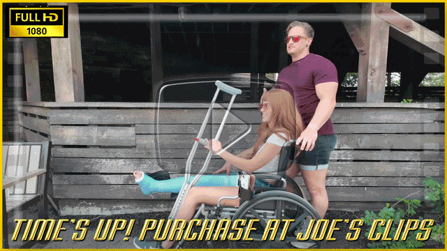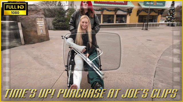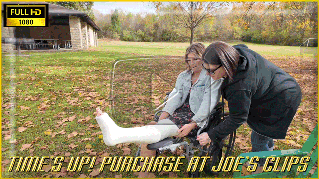 Here's a shoot from around Halloween that I meant to post the same day but I decided to post the Audrey/Lily clip first instead. Nicole is a female MMA fighter (based on reality) that recently broke her tibia and fibula while kicking her opponent in a fight. She's hanging out at the park with her friend Joe Joe and talking about the Halloween party tonight. Nicole is going as Sara Conner from Terminator. She's already got the jean jacket and other clothes that will work but she feels that some wooden crutches would really sell the early 80's look so they decide to hit the local antique mall and see what they can find there. Joe Joe helps her get up into the big truck and get her long straight leg in, but Nicole has to sit sideways for it to work. At the antique mall, Joe Joe pushes her around in the chair and Nicole has her long, straight LLC propped up high on a leg rest. Nicole mostly sits but sometimes gets up on her crutches to look around. Joe Joe is very helpful as Nicole's leg is very freshly broken and very sore so she's careful to be gentle with propping it up and helping Nicole back into the chair, but sometimes Nicole does kind of plop down. Other than that, Nicole and JoJo just go down the aisles looking at things and talking to each other about it. She definitely got a lot of questions and unfortunately a few times were off-camera. They don't have much luck finding the kind of crutches she's looking for but they did find some very old antique crutches. Finally Joe Joe gets Nicole back into the truck and they just decide to let her leg stick out of the window on the way home.