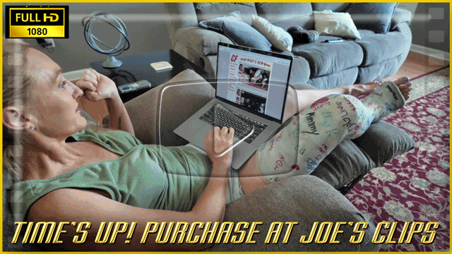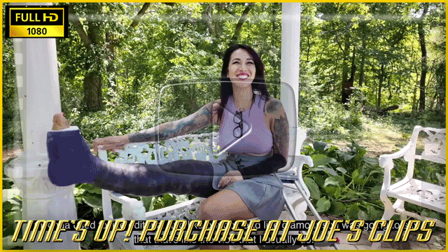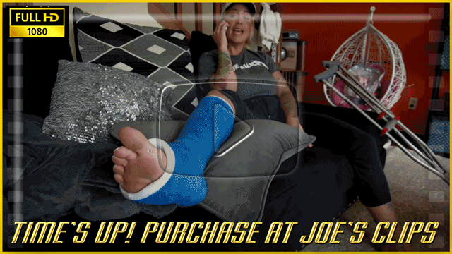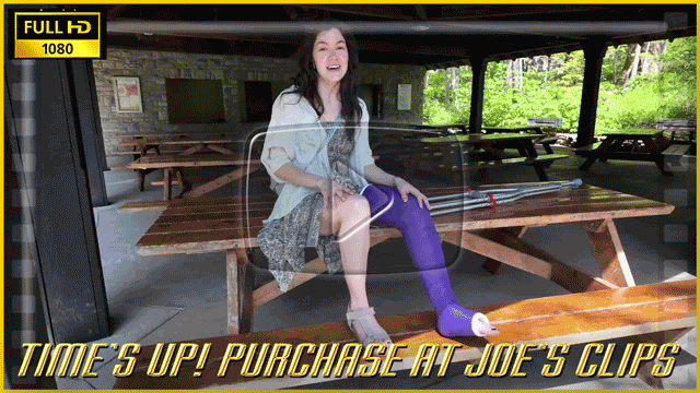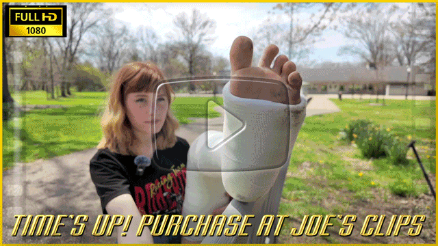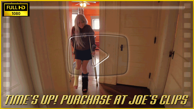 Here's a clip that was filmed yesterday when I met Muffy for the first time. She and her friend Fae travel around doing fetish shoots and were staying at a hotel. I decided to play on the hotel theme and do a story in which a bellhop gets to assist a freshly casted woman in her hotel room. Muffy's got a cute, southern accent and showed up with a nice french pedicure. In this clip, we (the bellhop) find Muffy outside trying to unload her truck and grab her bag for her. She explains that she just broke her leg and she's new to crutching. When we get to the room, she asks us to come in with the suitcase. She has a seat as we stand there waiting for a tip. She gets up to give us a tip but ends up knocking her leg into the table and needing to get on the bed with her leg propped up. Her friend that travels with her just sits there looking at her phone. She asks you to help her get her leg propped up and talks about how she broke it. She says that she's needing to do a foot worship video for one of her fans and asks if you'd mind filming it for her. You do a good job on that so she asks you if you'd take some pictures for her. You sit as she changes into something more sexy. When it's over, she asks you to put your phone number on her cast so she can call you when she needs something. Non-nude version will be on Joe's Clips.