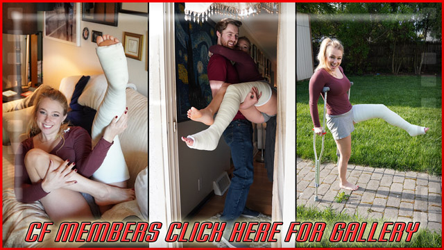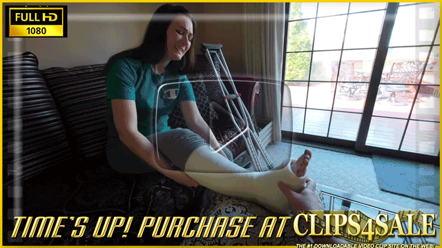 In our previous clip, Jessica comes up with the crazy idea of jumping off a chair in heels in hopes of getting the leg cast that she's always wanted. After hurting her leg, she immediately regrets it and questions your judgement for letting her do it. She got the LLC she wanted but is miserable and thinks it was not worth it. In this clip she's getting up and trying to learn her crutches and is having an terrible time with it. She's very clumsy and hurts her sore leg a few times before returning to the couch and pouting about her situation. Cut to a month later and you're coming over and finding Jessica "feeling fantastic" and up and about on her crutches in a sunny mood. She's not mad at you any more and her cast has aged a lot. She crutches around a little bit and then has a seat on the couch to catch you up on what it's been like. She says that she's probably not quite ready for sex, but that she's open to the possibility of receiving a tongue bath from you. You're shocked. She says her toes need some love and also some other things. In the bedroom, she lays back and tells you that she needs you to clean her toes and they need your undivided attention. She thinks you're not adequately appreciating her cast, so she asks you to kiss it all over. Then it's back to the toes and just when you think you've finished up, she tells you that you're not done yet and pulls off her panties. You can probably guess what happens next! Finally, she asks you to touch yourself while admiring her cast and after a while of that, she can't take it anymore and asks you to just do her.