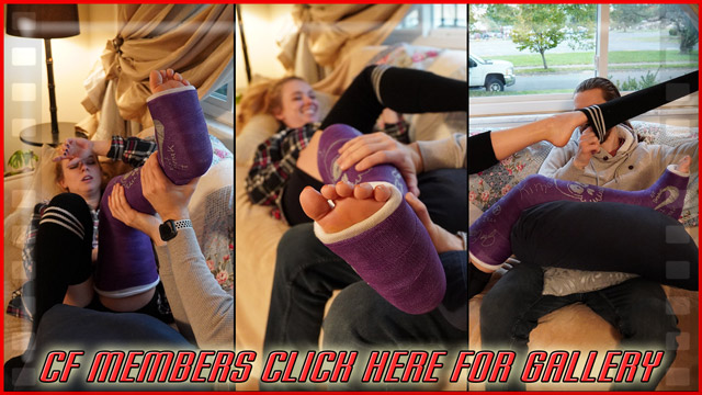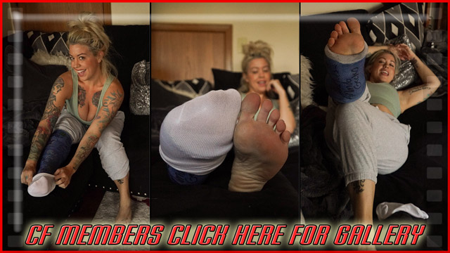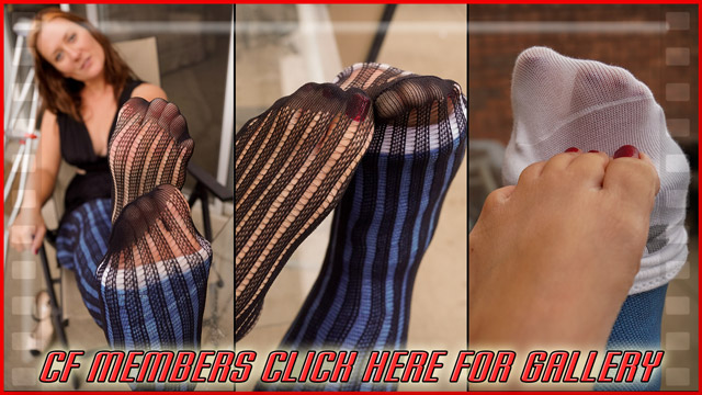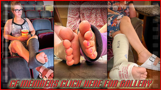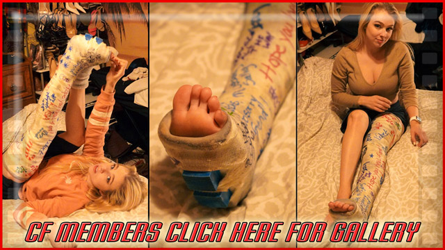 A lot of the pics in this gallery are kinda samey but that's because they're so hot I couldn't take enough pics. She pulls her pantyhose tight over her toes and off her cast. Then she takes her smelly three week old sock puts it on her casted toes.