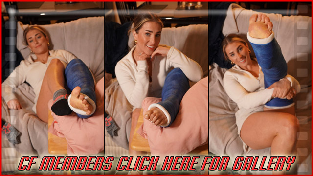Holly's looking sad and miserable about her new broken leg but then she perks up and starts making some pretty faces and nice poses with her sexy cast and cute toes.